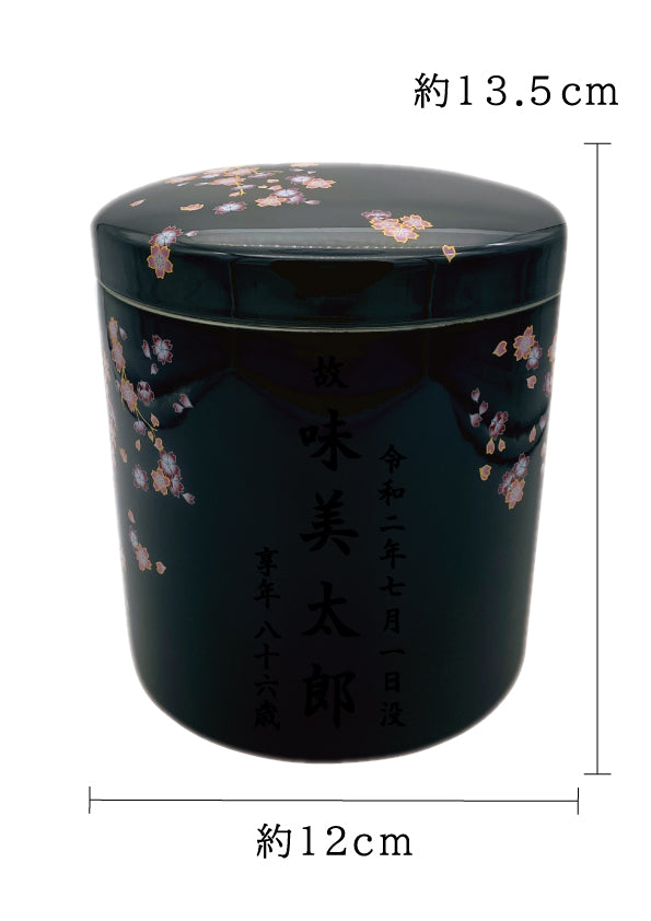 骨壺 みやび桜 黒 4寸【名入れ対応可】